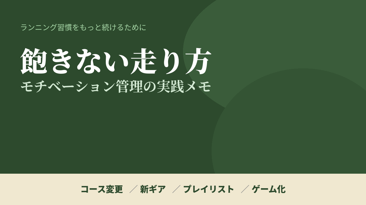 コースを変えて新鮮な景色を楽しむ、新しいギアで走る気持ちを高める、プレイリストを気分に合わせて切り替える、そしてチャレンジやアプリでゲーム感覚を取り入れる。どれもすぐに実践できるシンプルな工夫です。